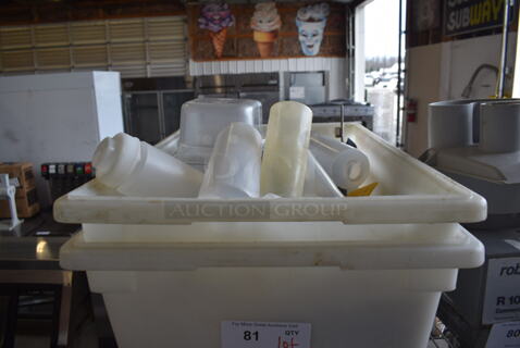 ALL ONE MONEY! Lot of Various Items Including Poly Condiment Bottles and Drop In Bins in 2 Large Poly Bins