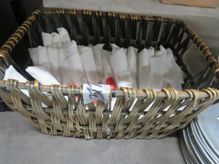 One Basket Full Of Wrapped Flatware.
