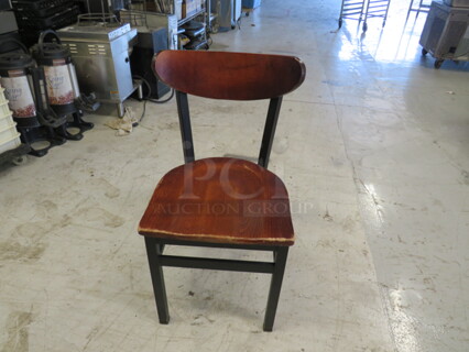 (x4) Black Metal Chair With Wooden Seat And Back. 4XBID
