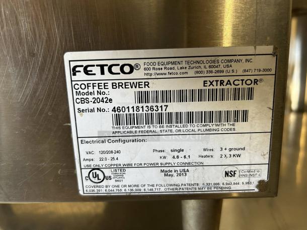 Outstanding Find - Fetco Extractor Series CBS-2042e E42016 Twin 1 Gallon Coffee Brewer - Tested and Working!